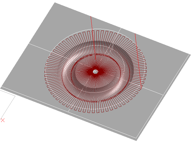 他の加工と同様に加工面を選択します。実際の加工範囲は軌道線と輪郭線で囲