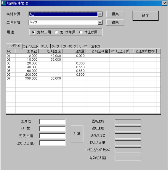 但し、この入力項目は一時的な工具径の切削条件を求める為であり