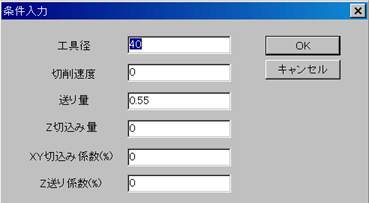 ・Z送り係数(%)を1セットとして数箇所の工具径分を入力します