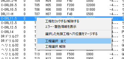 全ての工程を選択する場合はCtrl+Aキーを押すかリスト上で右クリックし