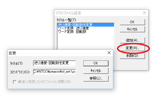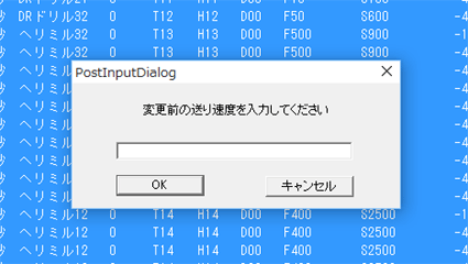 2)ダイアログから「送り速度・回転数を変更」を選択しOKボタンをクリックします