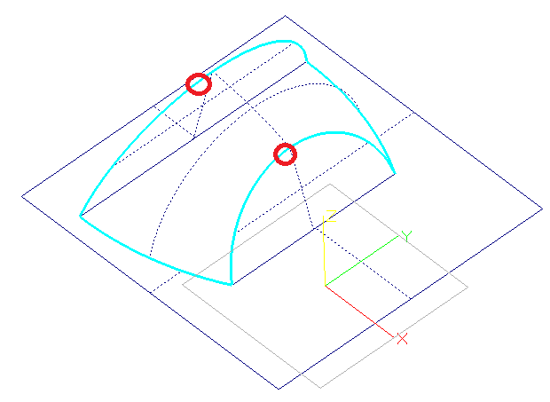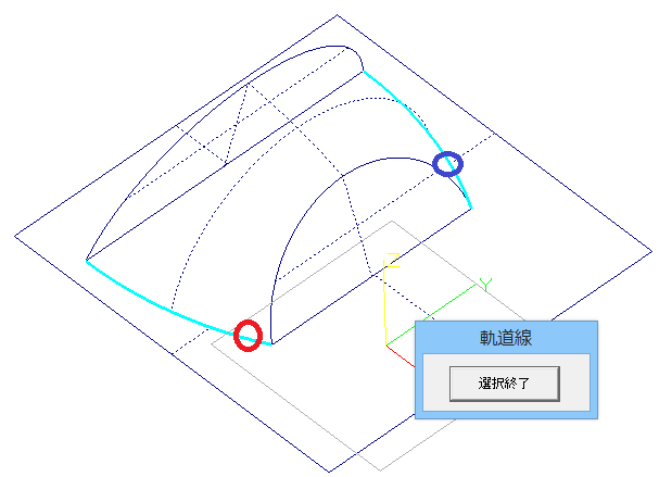 他の加工と同様に加工面を選択します。実際の加工範囲は軌道線と輪郭線で囲