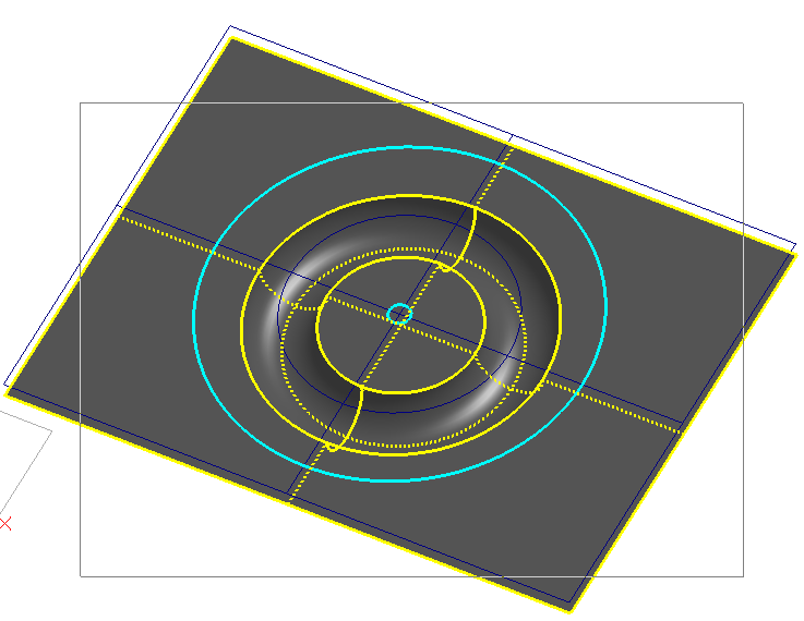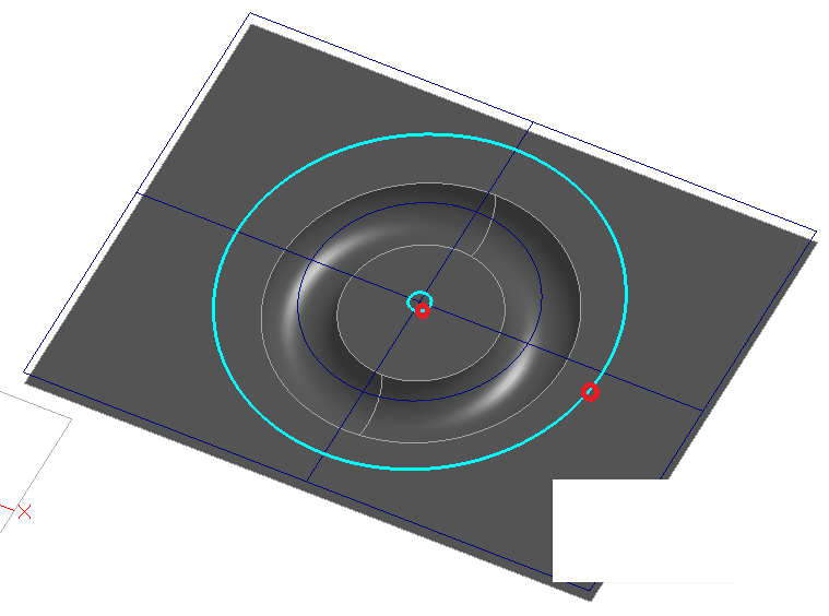 他の加工と同様に加工面を選択します。実際の加工範囲は軌道線と輪郭線で囲