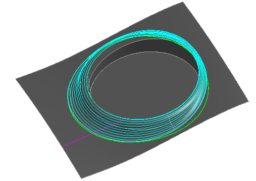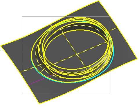 他の加工と同様に加工面を選択します。実際の加工範囲は軌道線と輪郭線で囲