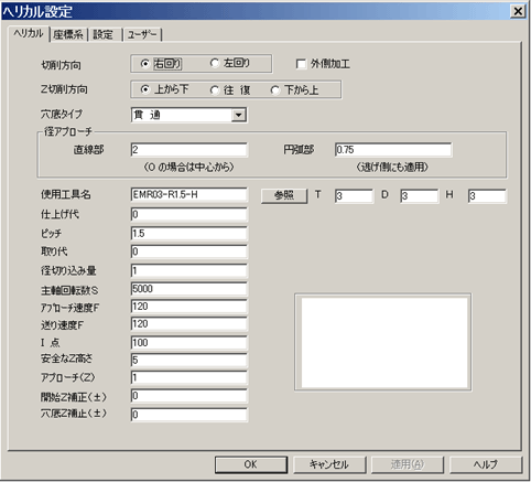 ヘリカルタップに円弧アプローチを追加