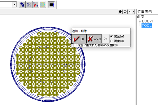 円状領域・開領域・取り残し加工・3D荒加工で使用可能