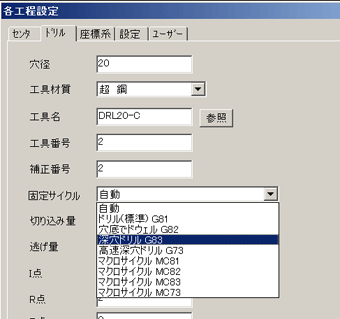 穴加工で固定サイクルを直接指定できるようにしました
